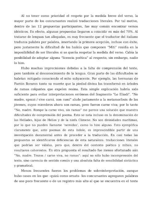 En esta segunda emisión del Concurso 1x1, correspondiente a 2016, ya tenemos los resultados del poema en italiano, el poema "Miti" de Carla de Bellis, seleccionado por Fernando Ibarra, quien ahora nos explica en un minucioso escrito su elección de la traducción ganadora entre las doce participantes. ¡Felicidades!